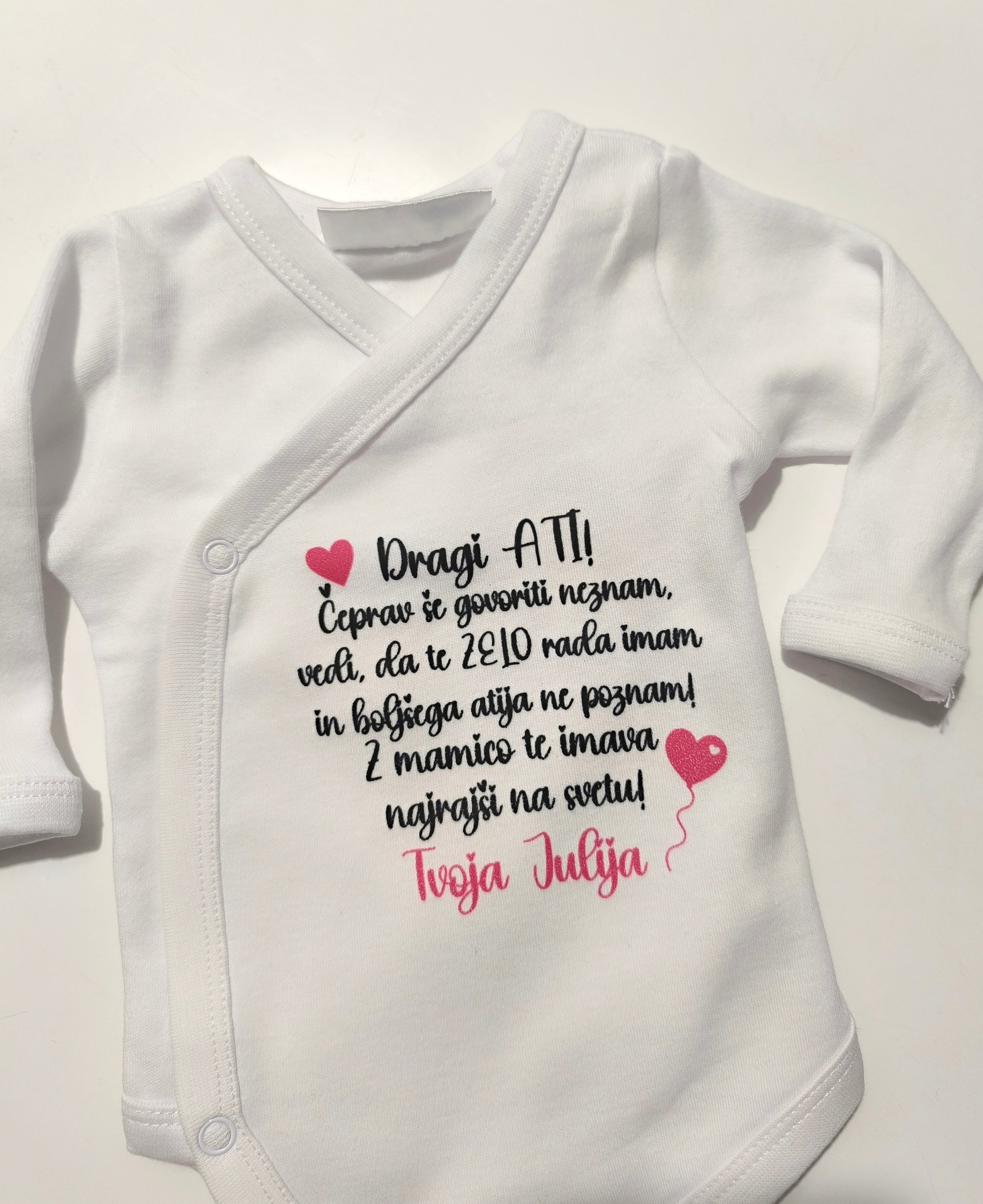 Izrazite najtoplejše voščilo tudi takrat, ko malček še ne zna govoriti! Naš ljubki bodi s tiskom rojstnodnevne čestitke je popoln način, da vaš mali junak ali junakinja preko oblačila sporoči kar ne zna povedati.