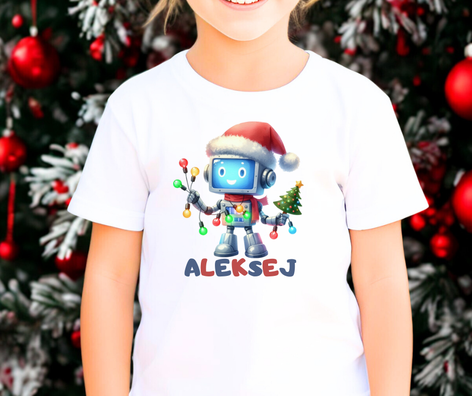 🤖🎄 Otroška personalizirana majica – Božični robotek🎅✨