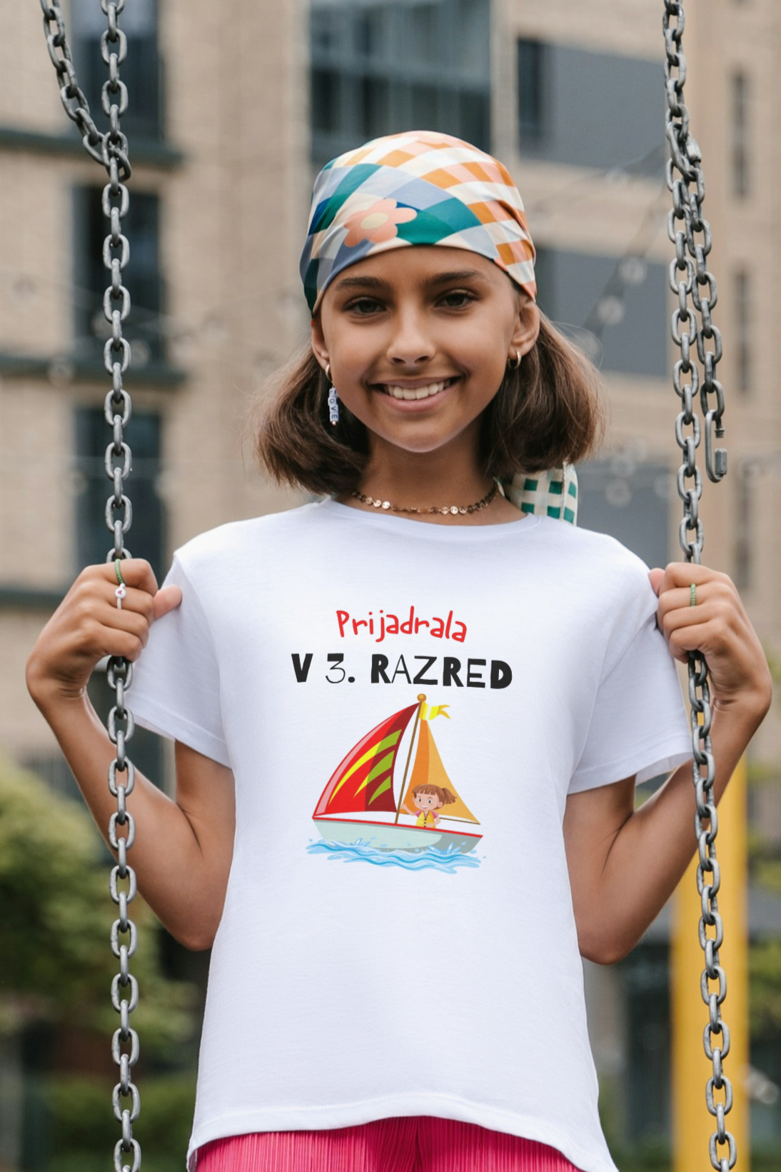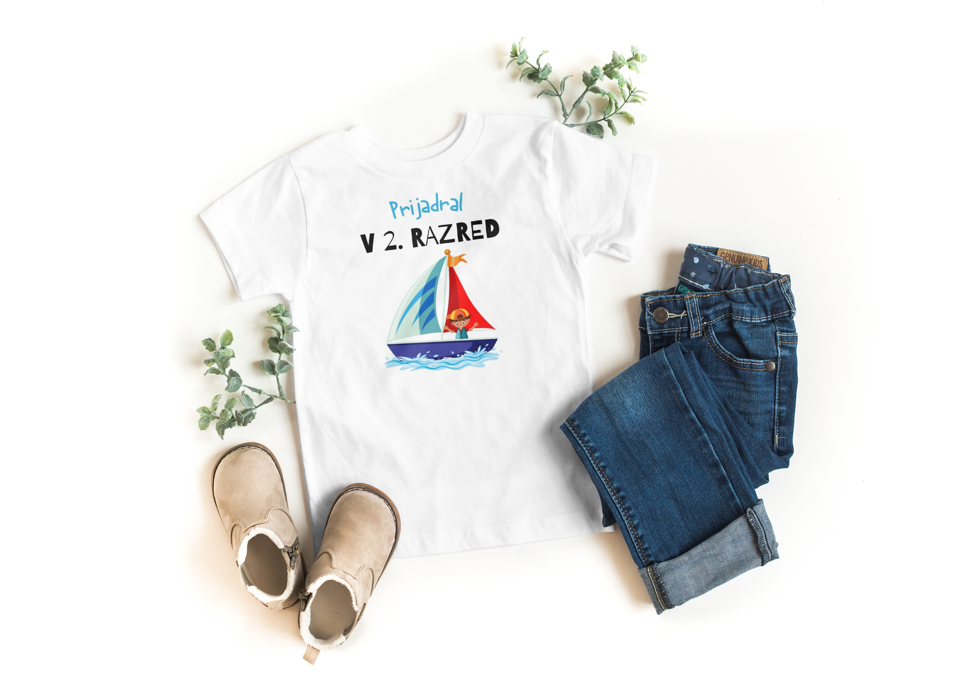 Za vse male kapetane in kapetanke, ki so uspešno prijadrali v 2. ali 3. razred, je ta majica prava izbira! Zabaven dizajn z jadrom.