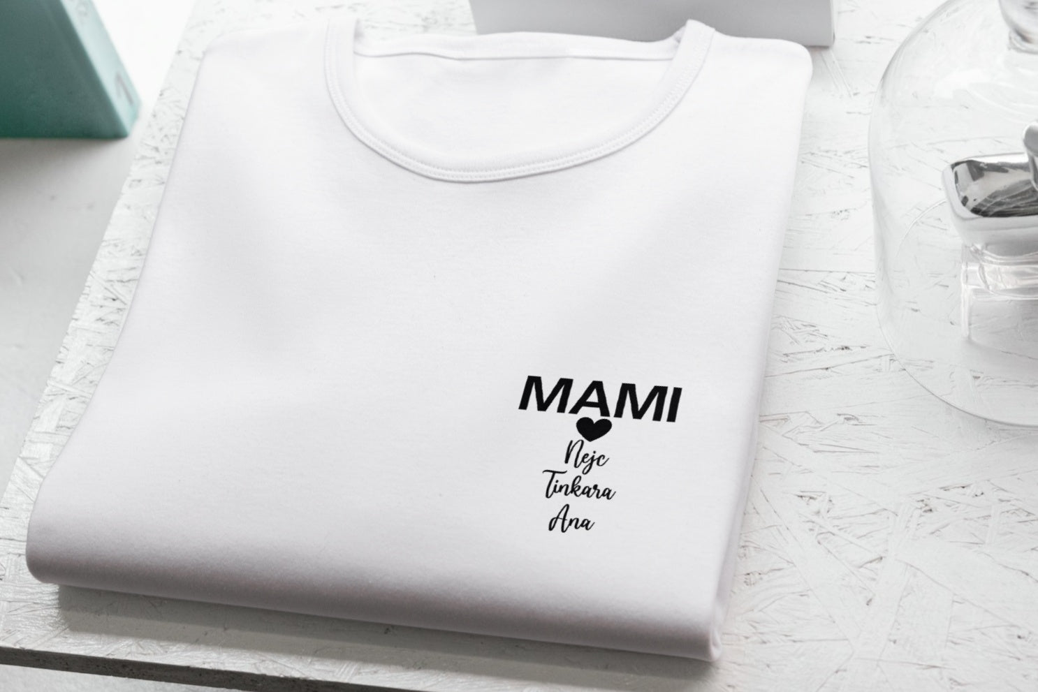 S to unikatno majico boš nosila svojo najlepšo vlogo – mami – vedno s seboj. Personalizirana z imeni tvojih otrok in simpatičnim srčkom bo vsak dan malo bolj poseben.