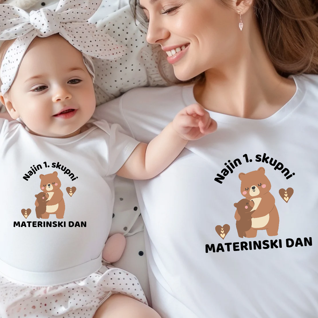 Poseben trenutek zasluži posebno obeležje – in kaj je lepšega kot srčkan komplet za mamico in njenega malega zakladka? Naš matchy-matchy duo z napisom “Najin prvi skupni materinski dan” je popolna izbira za to nepozabno priložnost.