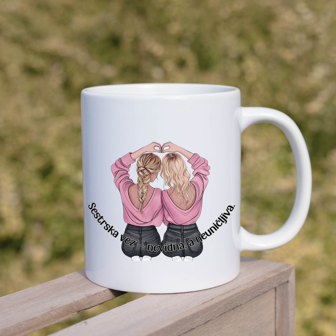 Preseneti svojo malo (ali veliko) sestro z edinstveno skodelico, ki nosi prav posebno sporočilo. Na lončku je prikupna ilustracija deklic in krasen napis.
