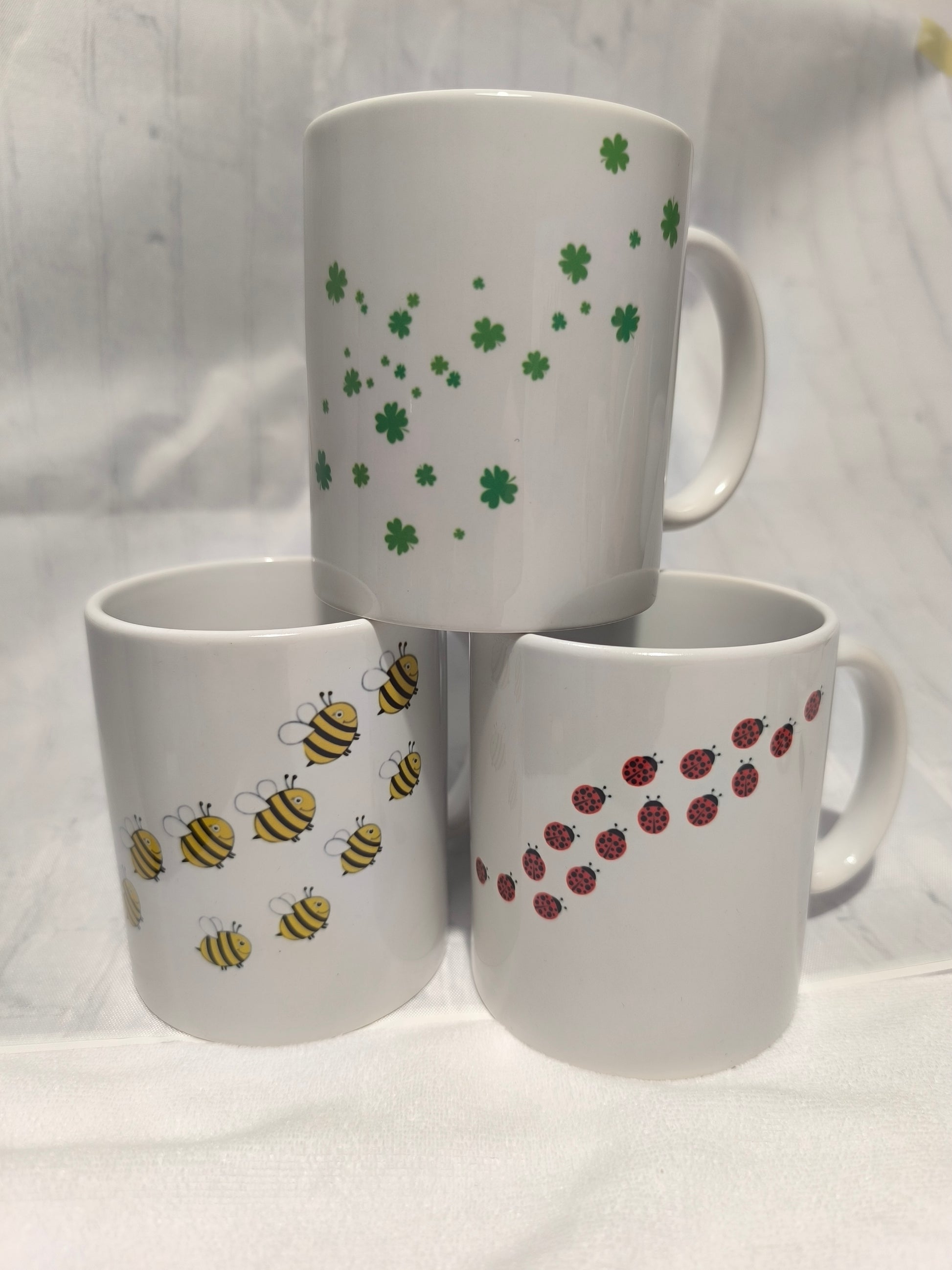 Skodelico krasijo prikupni motivi štiriperesnih deteljic, pikapolonic ali čebelic, ki simbolizirajo srečo, pridnost in toplino – prav takšne vrednote, ki jih goji vsaka čudovita učiteljica.