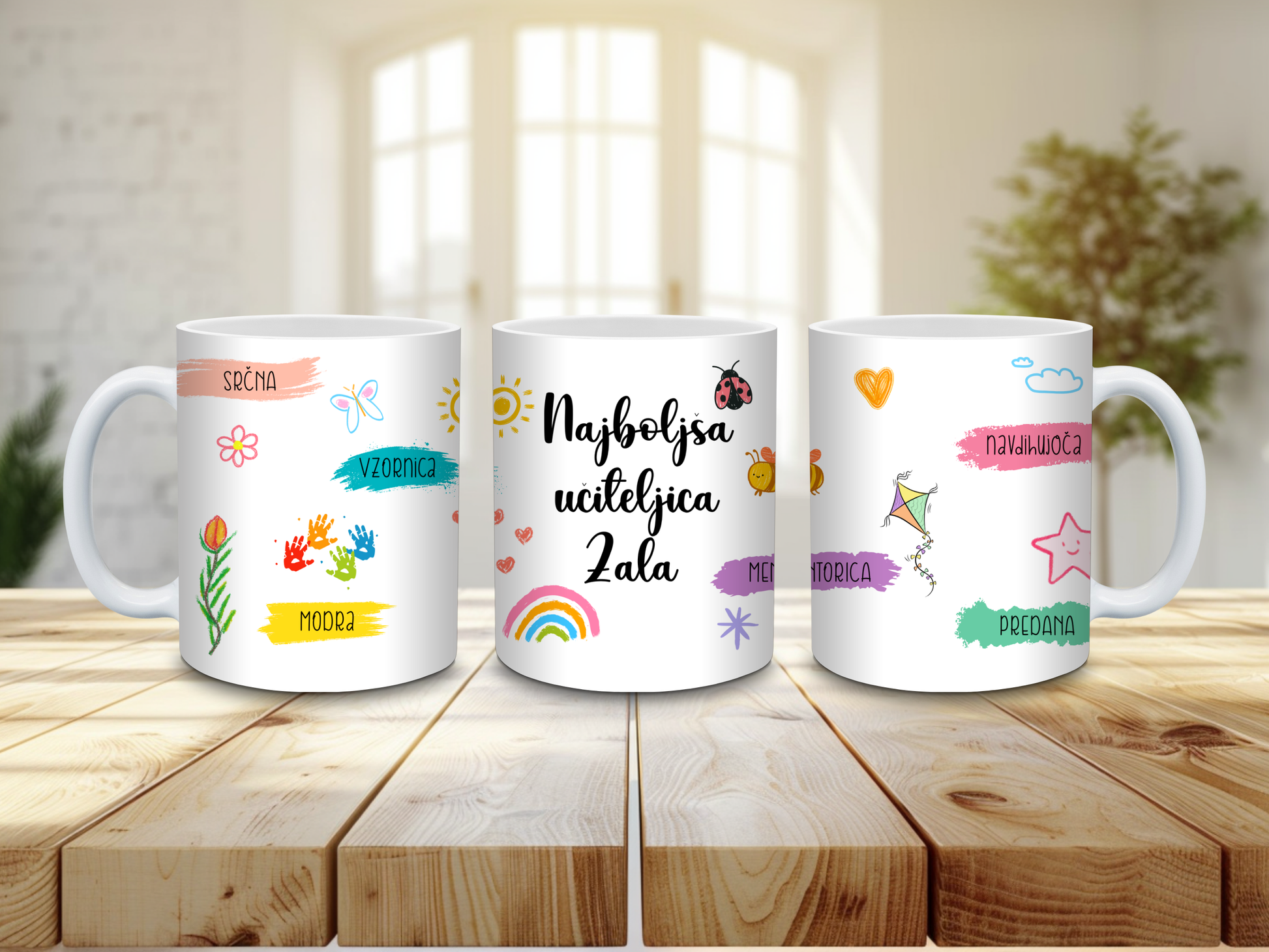 Najlepša darila niso vedno velika – včasih so preprosto srčna. Ta personalizirana skodelica, namenjena prav posebni vzgojiteljici ali učiteljici, je prikupen in iskren način, kako izraziti hvaležnost za ves trud, ljubezen in potrpežljivost, ki jo vsak dan podarja otrokom.